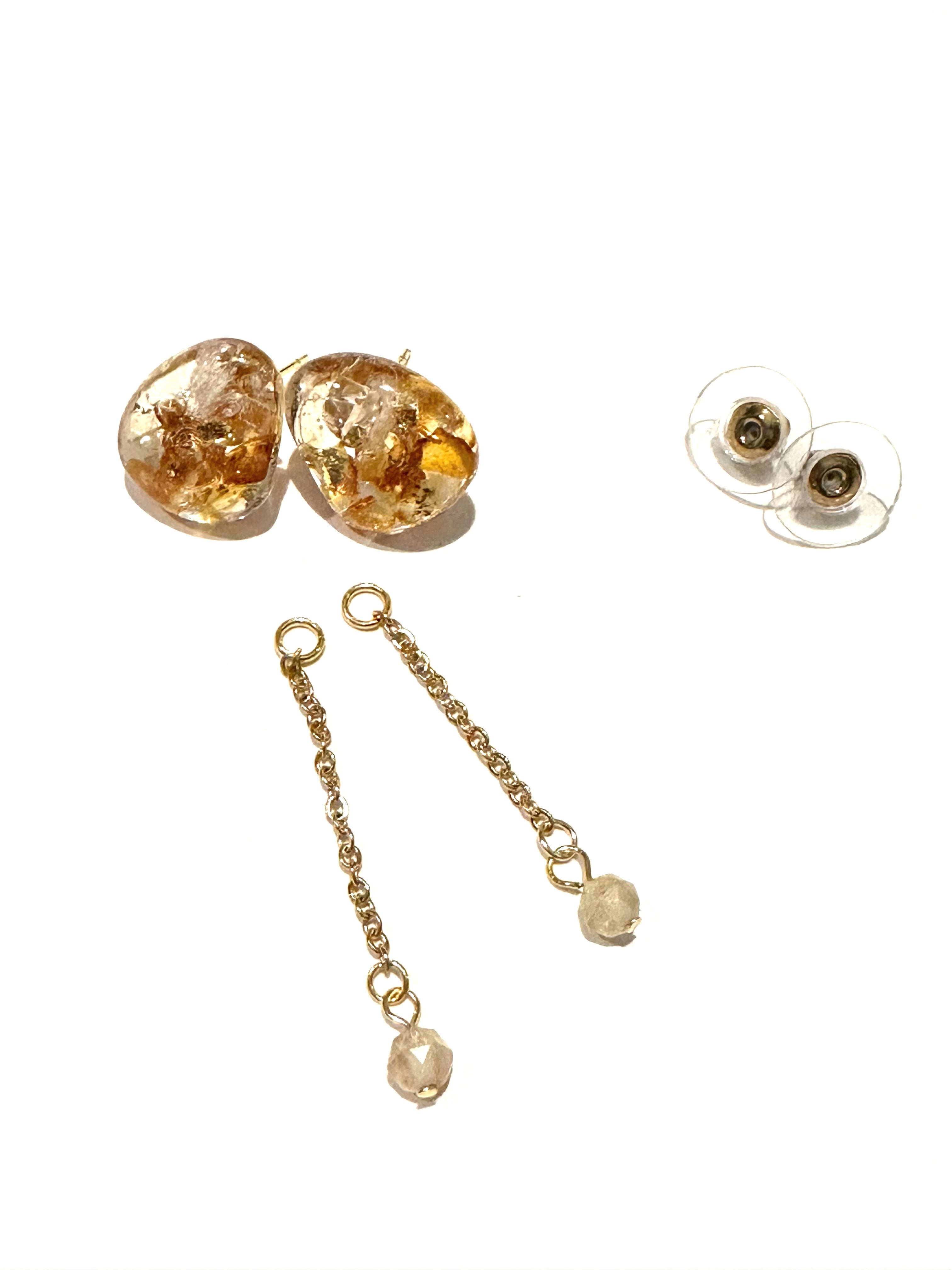 ゴールドシトリンとルチルクオーツのピアス
