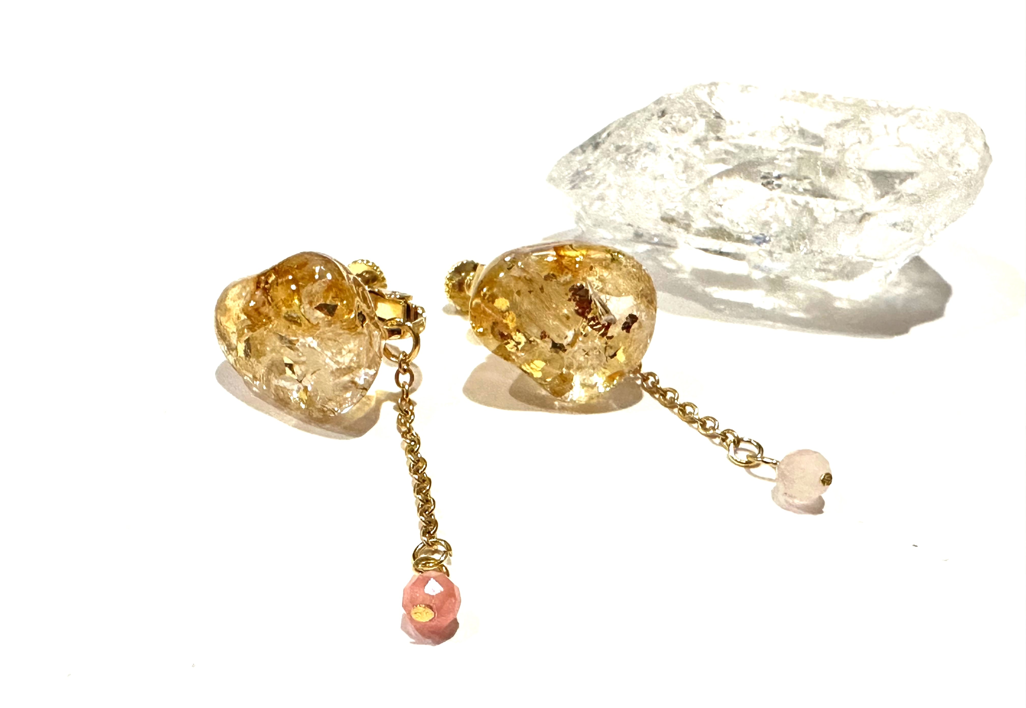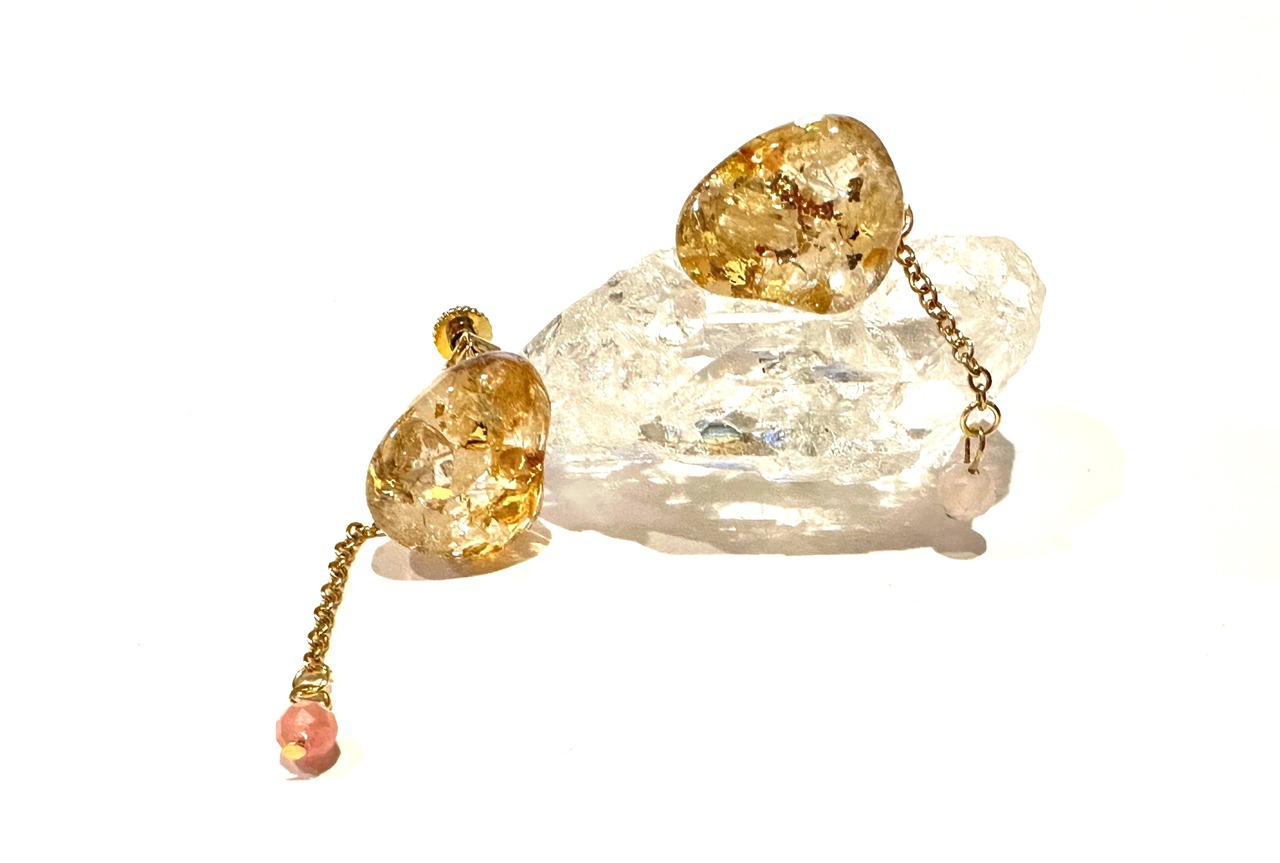 ear ゴールドシトリンとルチルクオーツのイヤリング