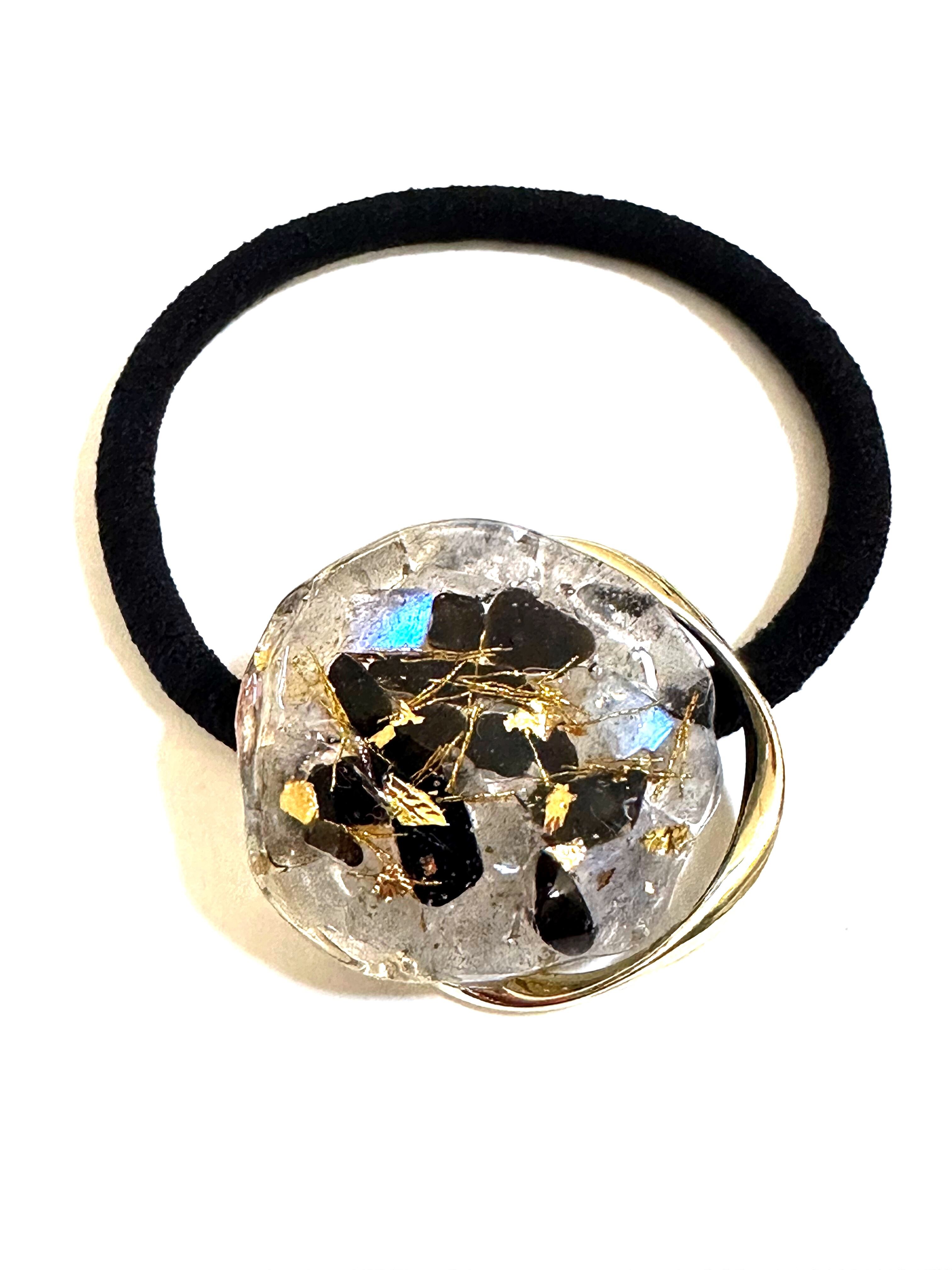 モリオンとラブラドライト・神秘の力・厄除け・邪気払いオルゴナイト・ヘアゴム