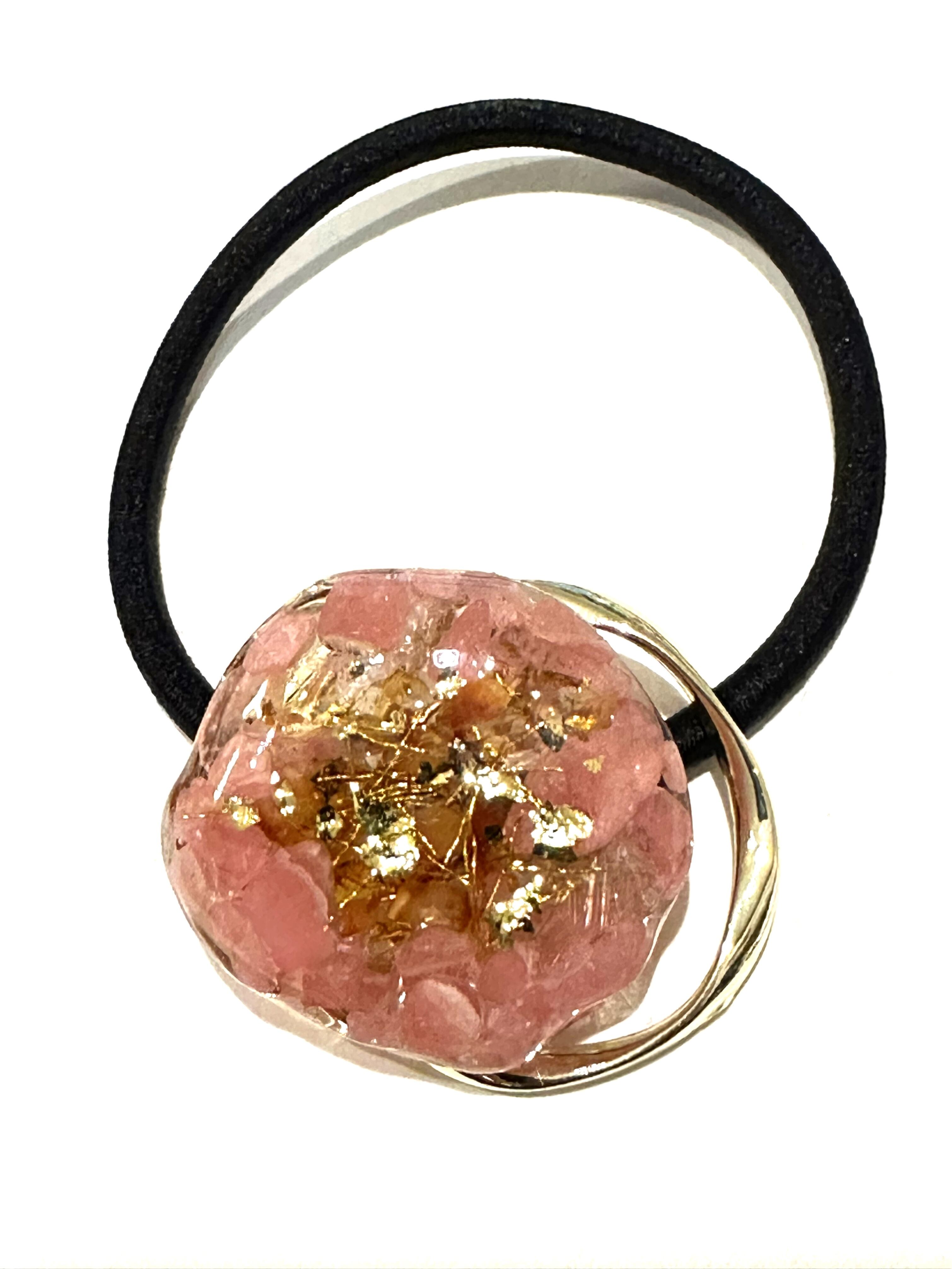 ④愛情と金運の石・インカローズ&アンバーシトリン ヘアゴム